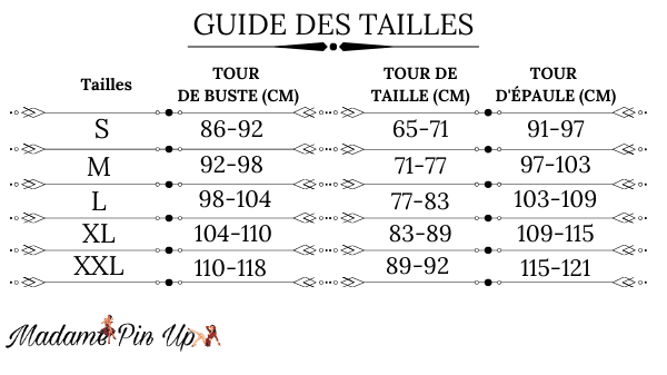 Vous hésitez sur la taille de votre robe vintage ? Vous trouverez dans notre guide des tailles des informations concernant les standards européens en vigueurs. Chez Rétro pin up, toutes nos robes sont taillées selon ce guide.